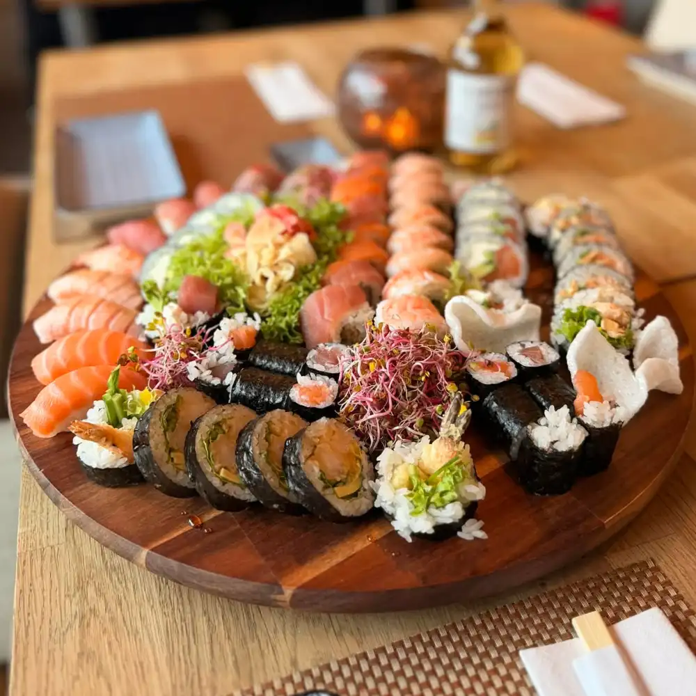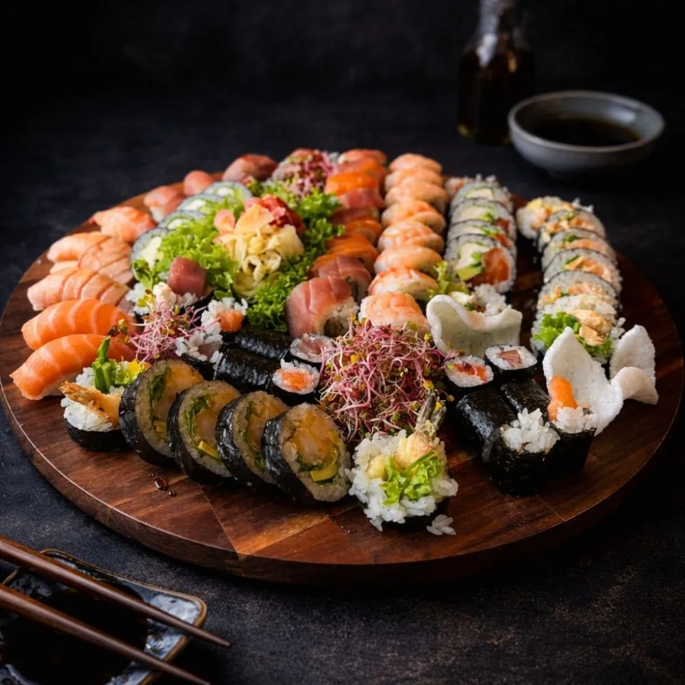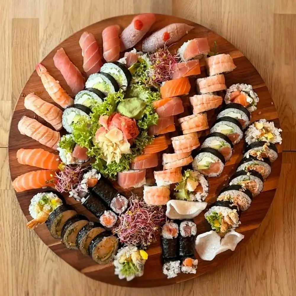 Duży Sushi Mix to bogaty i różnorodny zestaw stworzony z myślą o większych grupach. Łączy nigiri, hosomaki, futomaki oraz california rolls, dzięki czemu każdy znajdzie coś dla siebie. Duże zestawy sushi nawiązują do japońskiej tradycji wspólnego jedzenia i dzielenia się potrawami przy jednym stole.
